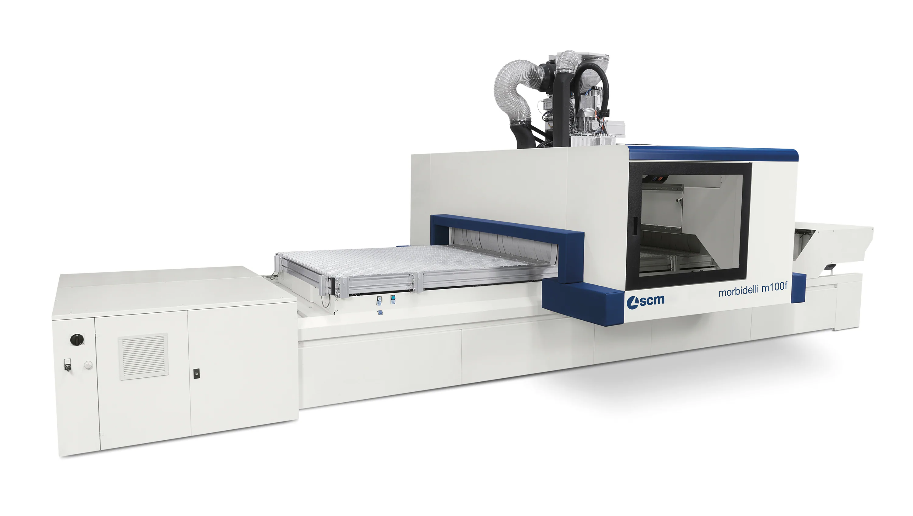 Koniec problemów z wszechobecnym pyłem i trocinami. Specjalnie wyprofilowana osłona wrzeciona kieruje odpady prosto do systemu odpylania. Zarządzanie krućcami systemu odpylanie znacznie zwiększa wydajność odciągową. Każdy agregat ma własny system odpylania który jest aktywowany tylko podczas obróbki. Takie rozwiązanie nie tylko ogranicza pobór powietrza ale także zwiększa jego wydajność na aktywnym króćcu. Wszystkie kable i przewody są umieszczone wewnątrz korpusu maszyny co sprawia, że czyszczenie maszyny jest znacznie łatwiejsze a ewentualne odpady spadają bezpośrednio na taśmę transportową i są wyrzucane na zewnątrz maszyny.