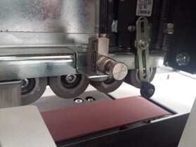 - Nieprzypadkowo zespół dociskowy jest wyposażony w dwie stalowe rolki. Ich zadaniem jest odbiór ciepła z obrabianej krawędzi, każda rolka jest zamocowana na oddzielnej sprężynie dla lepszego dopasowania względem grubości obrzeża.
