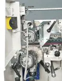 -wstępne frezy przygotowują krawędź płyty do klejenia, redukując nierówności po podcinaczu i zmniejszają zużycie kleju. Okleiniarka standardowo wyposażona w diamentowe frezy o średnicy 80mm H=56mm,pozawalające zebrać do 2mm materiału.