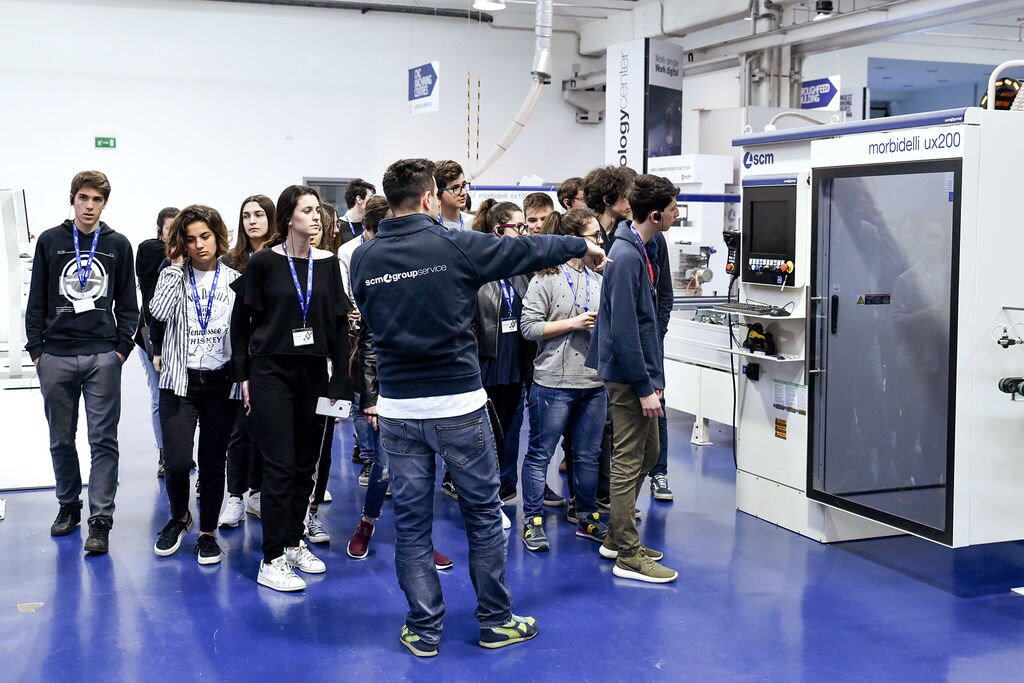仅仅在过去四个月内,在里米尼和Villa Verucchio的工厂及集团各品牌参加的展会,共有十余家学校近500名学生参与培训,其中包括高中和培训机构。这些培训机构多数专注于木材加工机械领域,例如 Tomezzo 的 Isis Fermo Solari,它是意大利木制建筑培训的先锋,还有都灵的San Carlo学院,他们的师生参观了最新一届米兰 Xylexpo 展会的 SCM 展位。