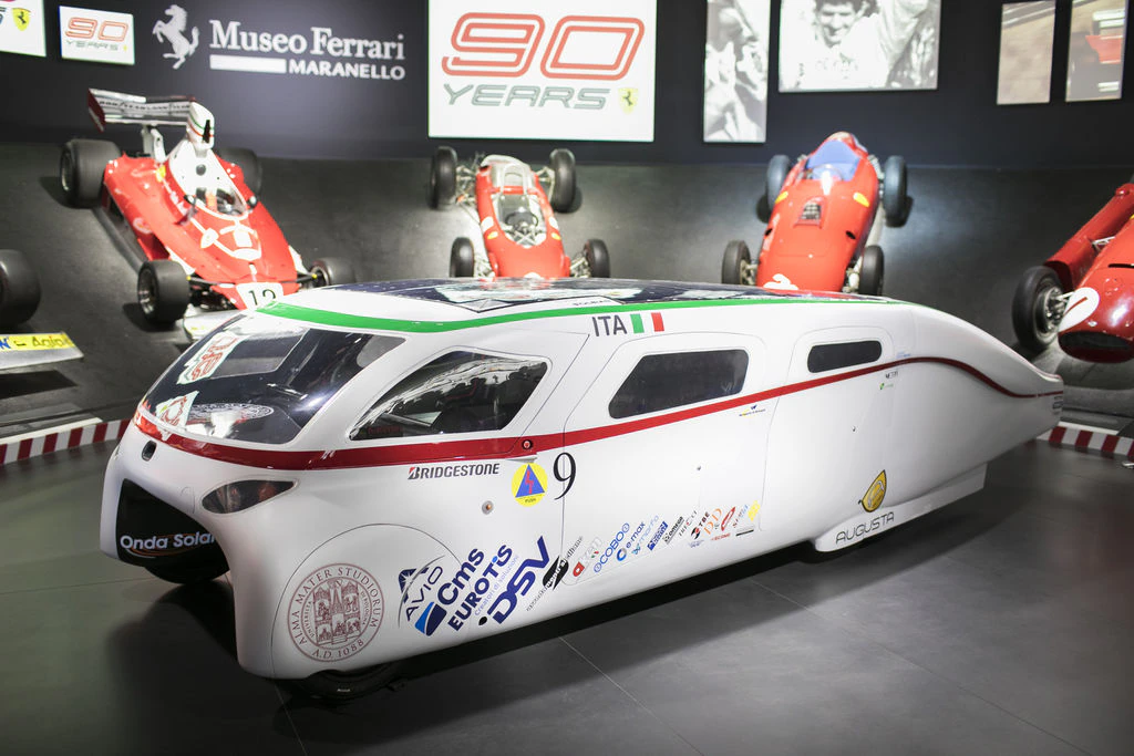 Emilia 4 LT是博洛尼亚大学4人座巡洋舰的新款车,于2019年7月赢得了仅靠太阳能就从内布拉斯加州到俄勒冈州横穿2800公里的美国太阳能挑战赛,并于7月31日由太阳能波团队在马拉内罗镇法拉利博物馆展出,在同类中这种新的独特模型,它将面临新的挑战,甚至比“星条旗”的赛事还要困难:世界太阳能挑战赛(2019年10月13日至20日) 在从达尔文到阿德莱德的澳大利亚沙漠中,穿行3000公里。