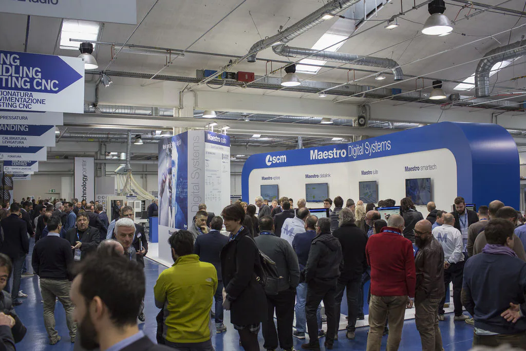 数百名行业专家聚集在数字中心,戴上SCM设计的智能眼镜亲自体验身临其境的增强现实,这种技术使SCM维修技术人员能够为客户提供远程交互式协助。一千名参观者参加了SCM软件应用(意大利语、英语和德语)的演示。活动为期三天,在此期间,寻求采用"工业4.0"原则的各大公司代表的一个主要收获是预览了IoT(物联网)网络。